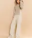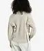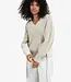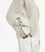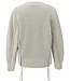 Deze moderne trui is gemaakt van een grofgebreide stof en heeft een diepe V-hals. De mouwen en zijkanten zijn afgewerkt met geweven inzetstukken en speelse strikkoorden, wat zorgt voor een uniek contrast in textuur. De rechte pasvorm en ribboorden geven comfort en stijl. Een eigentijds item dat warmte en flair combineert. Het model is 173 cm en draagt maat S.