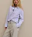 Deze gestreepte blouse heeft een getailleerde pasvorm, klassieke kraag en lange mouwen met brede manchetten. De strikkoorden aan de zijkant zorgen voor een verstelbare taille en een vrouwelijke look. De manchetten met contrasterende streeprichting voegen een verfijnd detail toe. Perfect voor zowel een zakelijke als casual outfit. Het model is 175 cm en draagt maat 36.