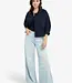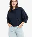 Dit blauwe blousejack heeft een oversized pasvorm met verlaagde schoudernaden en een klassieke kraag. Voorzien van een knoopsluiting, klepzakken met knopen en wijde mouwen met verstelbare bandjes. De taille is aan te passen met een trekkoord, wat zorgt voor een vrouwelijk silhouet. Een stijlvol item voor elk seizoen. Het model is 178 cm en draagt maat 36.