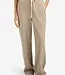 Deze luchtige broek is gemaakt van een zachte geweven stof en heeft een comfortabele, elastische tailleband met contrasterend koorddetail. De wijde pijpen zorgen voor een losse pasvorm en een elegante uitstraling. Afgewerkt met steekzakken voor en paspelzakken achter. Perfect voor een casual-chique look tijdens warme nazomerdagen. Het model is 175 cm en draagt maat 36.