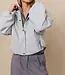 Dit comfortabele jasje heeft een subtiel ballonvormig silhouet, versterkt door de elastische zoom. Het is ontworpen met een opstaande kraag, verlaagde schouders, lange mouwen en een matte drukknoopsluiting. De zachte geweven stof en het minimalistische design maken het ideaal voor een moderne, casual look. Het model is 174 cm lang en draagt maat 36.