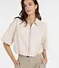 Dit losvallende jack heeft korte mouwen, een kraag en een comfortabele, losse pasvorm. Het model heeft een kortere lengte en sluit met een rits aan de voorkant. De elastische onderzoom zorgt voor een subtiel ballonvormig silhouet. De denim uitstraling geeft het jack een stoere touch, terwijl het ontwerp veelzijdig genoeg is voor een casual, gelaagde look. Het model is 176 cm en draagt maat 36.