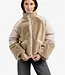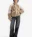Deze korte jas is ontworpen met zachte teddy aan de voor- en achterkant. De mouwen zijn gewatteerd en afgewerkt met brede teddy manchetten. De opstaande kraag en losse pasvorm geven een moderne uitstraling. Voorzien van een ritssluiting en schuine steekzakken. Ideaal voor een warme en stijlvolle look. Het model is 175 cm en draagt maat 36.