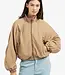 Dit korte jack is gemaakt van een gladde, lichtgewicht stof en heeft een oversized pasvorm. Het ontwerp is voorzien van een opstaande kraag, lange mouwen met zachte plooidetails en een ritssluiting aan de voorkant. De elastische boorden zorgen voor een sportieve touch. Een modern en casual item, perfect voor het tussenseizoen. Het model is 175 cm en draagt maat 36.