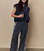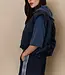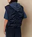 Deze veelzijdige bodywarmer is omkeerbaar en biedt twee stijlvolle looks in één. Gemaakt van glad nylon met een gewatteerde voering, heeft hij een normale pasvorm en een ritssluiting. Ontworpen met een geribbelde kraag en praktische paspelzakken aan beide kanten. De elastische zoom zorgt voor een comfortabele pasvorm - perfect om te dragen als laagje tijdens de overgangsperiode. Het model is 175 cm lang en draagt maat 36.