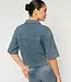 Een eigentijdse variant op het klassieke spijkerjack. Dit jack heeft een relaxte pasvorm met korte mouwen en een klassieke kraag. De mooie knoopsluiting en de voorzakken zorgen voor een casual maar verfijnde look. De denimstof met textuur geeft het jack een unieke uitstraling. Combineer het met een bijpassende jeans of draag het over een jurk voor een moeiteloos coole look.