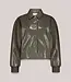 Glanzende lakjas met aangesloten fit, kraagje, pofmouwtjes met gebreide boorden en steekzakken aan de voorkant. Een fijn jasje voor binnen én buiten.