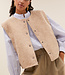 Een stijlvolle, mouwloze jas met een moderne twist. De zachte wolblend en comfortabele pasvorm maken dit item perfect voor gelaagde looks. Dankzij de ronde halslijn en drukknoopsluiting oogt de jas tijdloos én verfijnd. De verborgen steekzakken voegen een praktisch detail toe, terwijl het reversible design zorgt voor extra veelzijdigheid. Een favoriet die moeiteloos elke casual outfit compleet.
