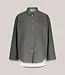 Deze ruimvallende overhemdblouse combineert een geprinte streep met een unieke bloemenprint. De blouse heeft een verlaagde schoudernaad en verstelbare manchetten.