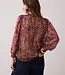 Deze zachte top heeft een opvallende tie-dye print en is gemaakt van een semi-transparante stof. De ronde halslijn is afgewerkt met een ruchekraagje en een diepe split met knoopsluiting.