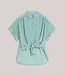 Onze repeat van afgelopen winter: de wear-your-way blouse, maar dan met korte mouwtjes. De korte knoopsluiting en hoge splitten maken het mogelijk om de blouse op verschillende manieren te dragen: losvallend als blouse voor een relaxte look of aan de voorkant gestrikt voor een feminine shape. De blouse heeft een ronde zoom en een pas met zachte rimpeling.