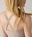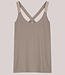 Basis singlet met kruisband op de rug, gemaakt van katoen elastaan jersey stof. De top heeft een nauwsluitende pasvorm en opvallende glitterbandjes.