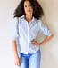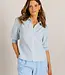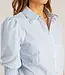 Zonnetje in de kast! Deze luchtige katoenen blouse heeft fijne streepjes, pofmouwen en een geschulpte kraag die het geheel een charmante look geeft. Dankzij de elastische manchetten zit ze heerlijk. Verkrijgbaar in wax yellow en powder blue – licht, vrolijk en elegant tegelijk.