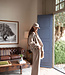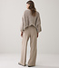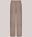 Broek met wijde pijpen, voorzien van steekzakken voor en strookzakken achter. Knoop- en ritssluiting en met elastiek in de achterkant van de taille.