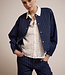 Het Pinstriped Denim Bomber Jacket is een frisse en eigentijdse interpretatie van een klassieker. Gemaakt van een stevige, maar comfortabele mix van 65% katoen, 33% polyester en 2% elastaan, combineert dit jasje de stoere uitstraling van denim met de sportieve snit van een bomber. De donkerblauwe denim (005033 – Dark Blue Denim) is verfijnd afgewerkt met een subtiele krijtstreep, wat zorgt voor een verrassend stijlvol contrast. De relaxed fit, ribboorden en ritssluiting maken het jasje zowel praktisch als modieus – ideaal voor het tussenseizoen. Draag los over een jurk, of combineer met de bijpassende Pinstriped Denim Trousers of Maxi Skirt voor een krachtige co-ord look. Met dit jasje voeg je moeiteloos karakter toe aan elke herfstoutfit.