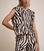 De Sleeveless Top Savannah Stripes is een luchtig en stijlvol item dat moeiteloos flair toevoegt aan je herfstgarderobe. Gemaakt van een soepele brushed stretch kwaliteit – een zachte, geborstelde stof met 97% polyester en 3% elastaan – biedt deze top een lichte stretch voor een flatterende pasvorm en een zachte, comfortabele feel. De neutrale streepprint (009991 – Print Neutrals) geeft de top een grafisch accent dat direct in het oog springt, terwijl het mouwloze model zorgt voor een moderne en minimalistische uitstraling. Perfect om solo te dragen op warmere herfstdagen, of als gelaagde basis onder een vest of jasje. Combineer met de bijpassende broek voor een gecoördineerde look, of draag los met een effen onderstuk voor een meer ingetogen stijl. Deze top is veelzijdig, eigentijds en verrassend makkelijk te combineren – een must-have voor elke garderobe met karakter.