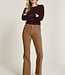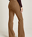 Jade heeft een hoge taille en een uitlopende broekspijp. De broek zit bij de bovenbenen aangesloten en loopt vanaf de knie uit.