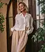Deze offwhite blouse straalt elegantie uit. Het kraagje en de blinde sluiting zorgen voor een clean en verfijnd silhouet. De geborduurde print met een subtiel pailletaccent geeft de blouse een luxe touch. Voorzien van lange mouwen en perfect om zowel chic als stijlvol casual te dragen.