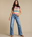De Claudette Slanted Seam Light Blue is een broek met wijde pijpen, schuine naden en een lichtblauwe wassing. De broek is verbonden op de heup en loopt vanaf het bovenbeen wijd uit. De Claudette Slanted Seam Light Blue heeft een hoge taille en een regular fit.